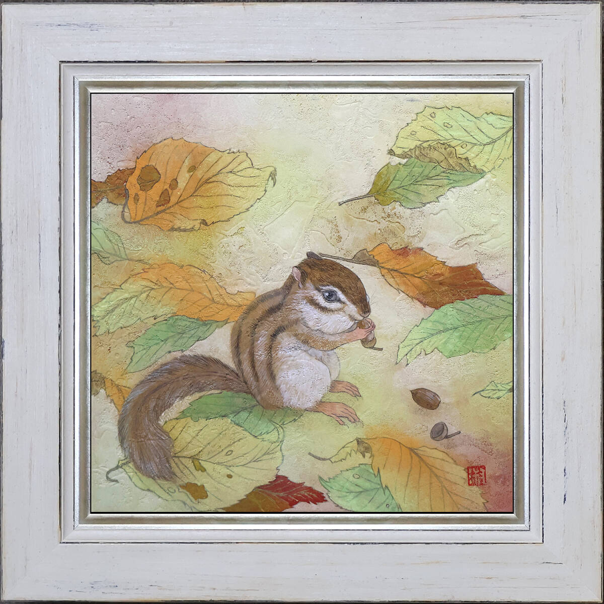 > 真作保証 川本淑子 森の中のリス 参考日経新聞26万販売 師・中島千波 可愛すぎる最高傑作 今にも動きだしそうな臨場感 動物を愛する画家