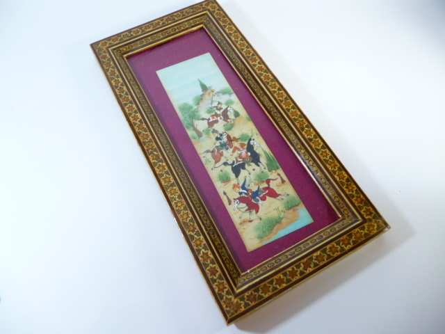 - ξ ハータムカーリー 額装 ξ イラン 寄木細工 象嵌 寄木 ペルシャ 額 ハタムカリー 工芸品 ハータムカリー 画 絵 Iran 置物 飾り 伝統
