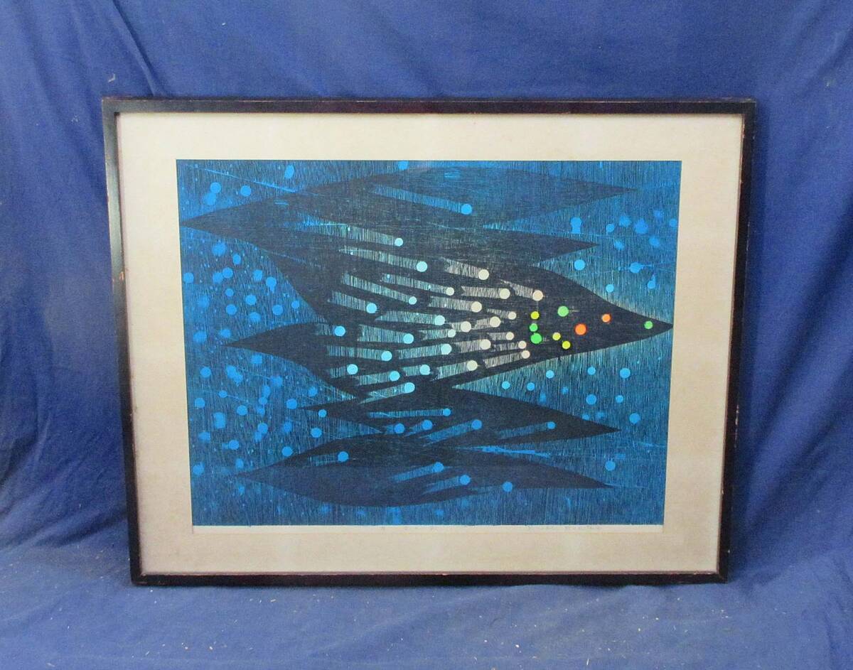 - 515628 木版画 吹田文明 作 「夜空の歌」(額装)