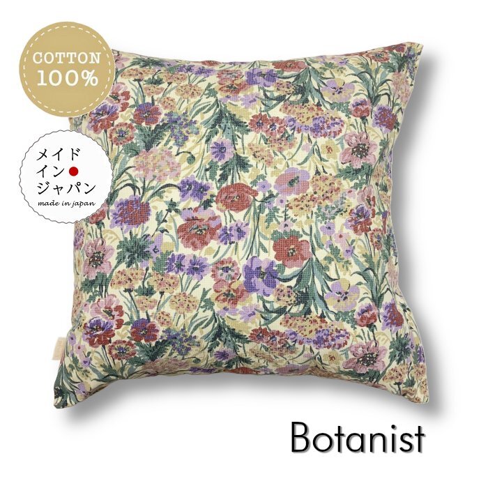 - 大判クッションカバー ボタニスト 北欧 赤 花柄 60×60cm 綿100%