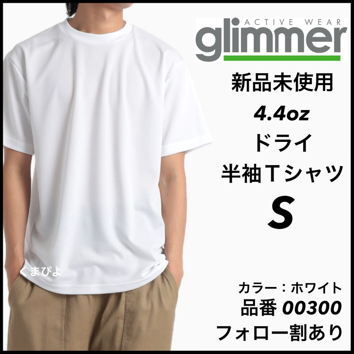 - 新品未使用 グリマー 4.4oz ドライ半袖Tシャツ 白 ホワイト Sサイズ スポーツ トレーニング 吸汗速乾 ユニセックス glimmer
