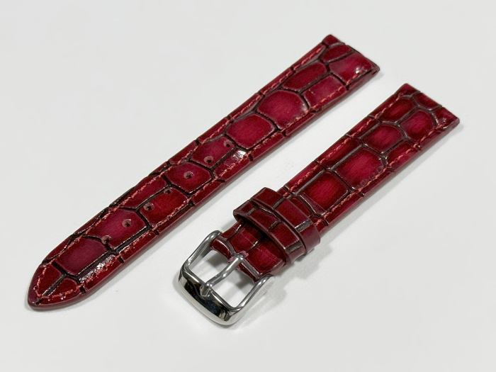- ラグ幅18mm クロコダイル型押し 腕時計ベルト レザーベルト バンド レッド シルバー尾錠 シルバー尾錠 レザーバンド LB102
