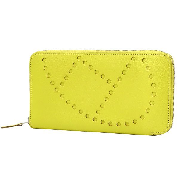 - 送料無料 本物 人気 HERMES エルメス エブリンジップロング □O刻印 シェーブル ライム ラウンドファスナー長財布 Hマーク ユニセックス