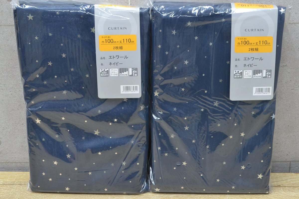 > W1662■未使用品・長期保管品■カーテン 2枚組 2セット■巾100㎝×丈110㎝■エトワール ネイビー■形状記憶 遮光1級 アジャスターフック付