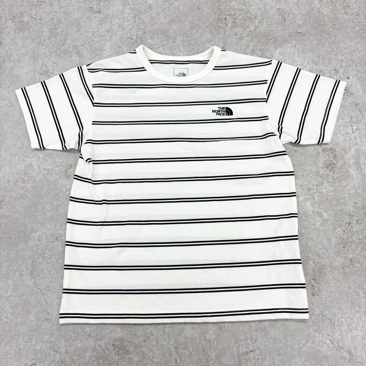 > 1800〓 THE NORTH FACE ザ・ノースフェイス 半袖カットソー メンズ サイズL ボーダー ホワイト ブラック トップス Tシャツ ロゴ刺繍