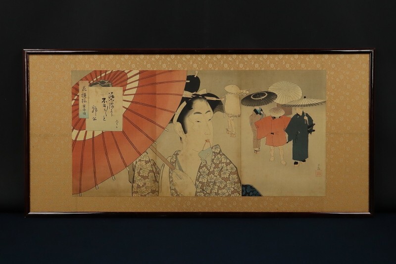 > 10211■【真作】小林清親 「花模様」 美人画 木版画 浮世絵 明治浮世絵の三傑 版画家 浮世絵師 扁額 木版
