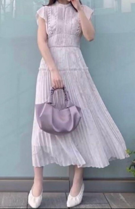 - 【SNIDEL】スナイデル 定番 プリーツロングワンピース ピンクベージュ