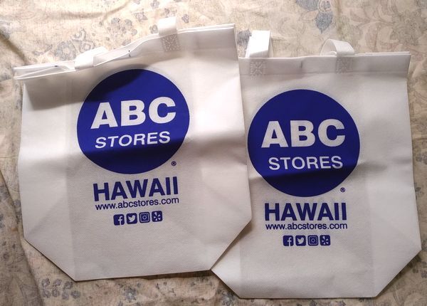 - 未使用 ABC STORES HAWAII ショッピングバッグ 2枚 白地に青ロゴ 約32x30cm ハワイ エコバッグ ショップバッグ トートバッグ ABCストア