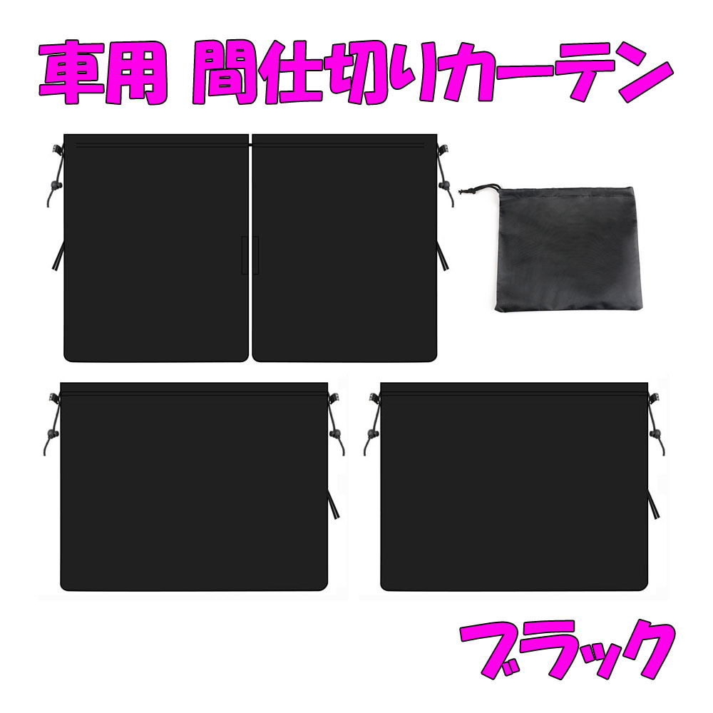 - 車用カーテン 間仕切り サンシェード リアカーテン プライバシー保護 紫外線対策 日よけ ブラック 黒