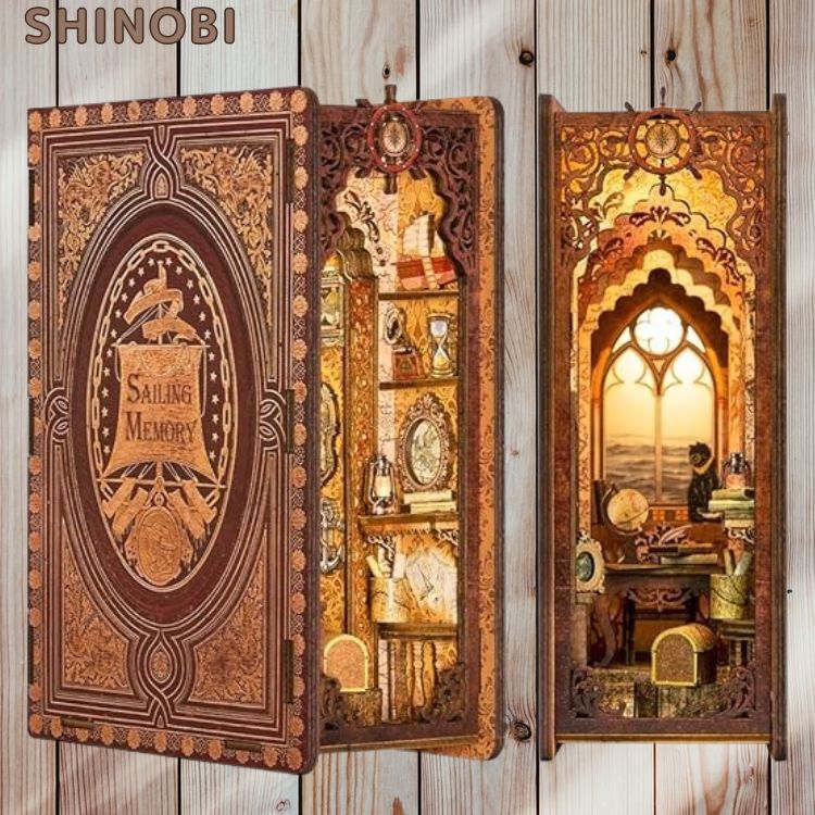 - ブックヌックキット ドールハウスキット ミニチュア ハウスキット テーマ:「航海の記憶」 アートワーク LEDライト付き