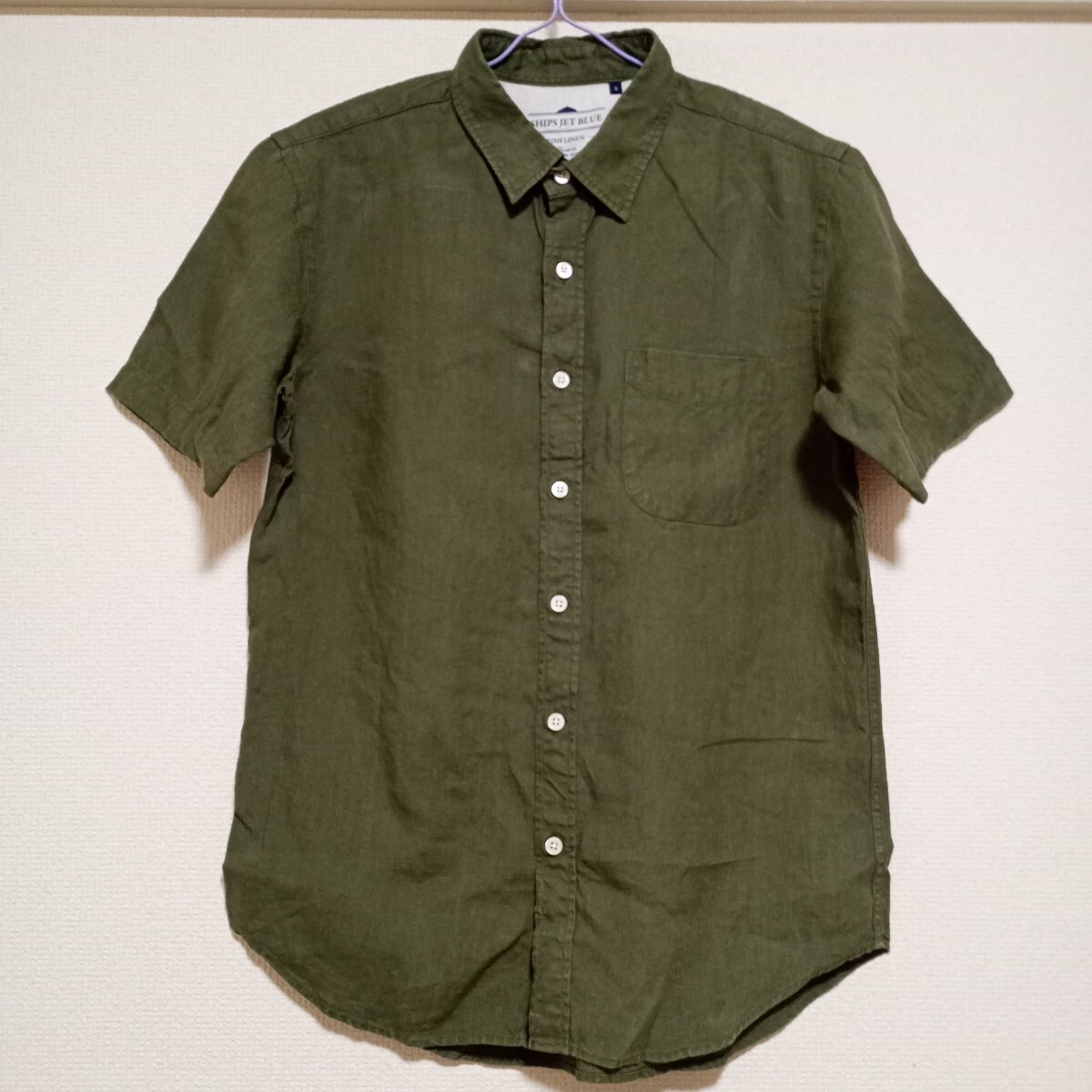 - SHIPS JET BLUE IRISH LINEN半袖シャツ S モスグリーン