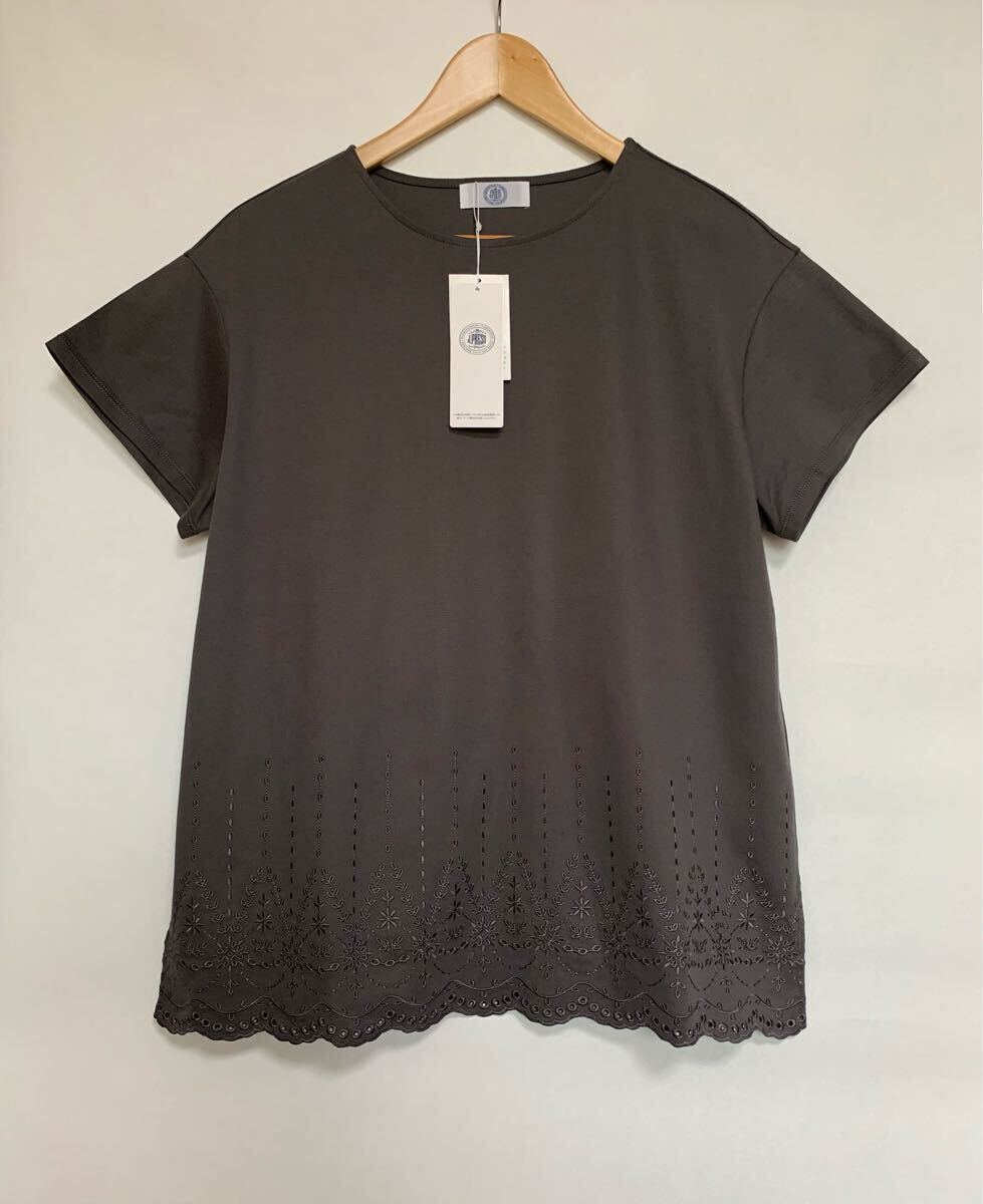 - 【未使用・タグ付】J.PRESS LADIES コンパクトコットンスムース 裾刺繍 カットソー グレー系 Lサイズ オンワード J.プレス