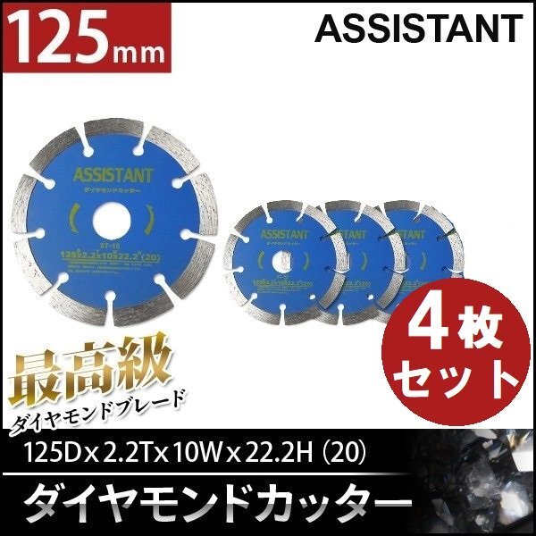 > 全国一律【送料無料】ASISSTANT■5インチ ダイヤモンドブレードカッター 125mm 乾式/湿式 調整リング付き!【4枚セット】