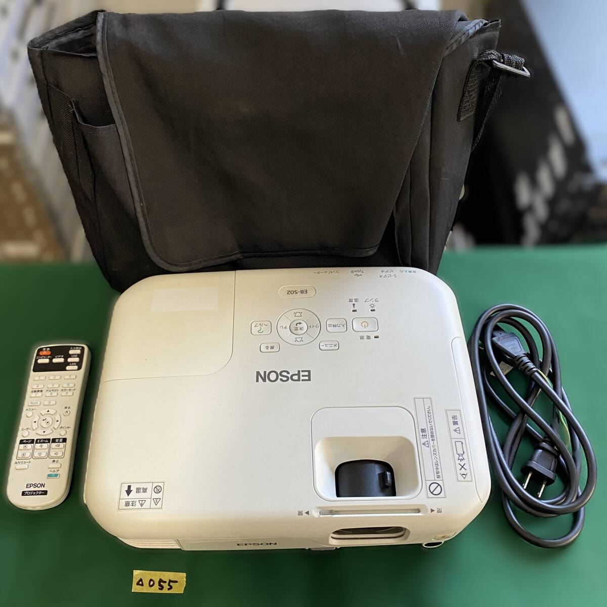 > (ヤ)△055【通電OK】EPSON EB-S02 3LCDプロジェクター SVGA 三原色液晶シャッタ式投映方式 リモコン 電源コード 専用バッグ エプソン