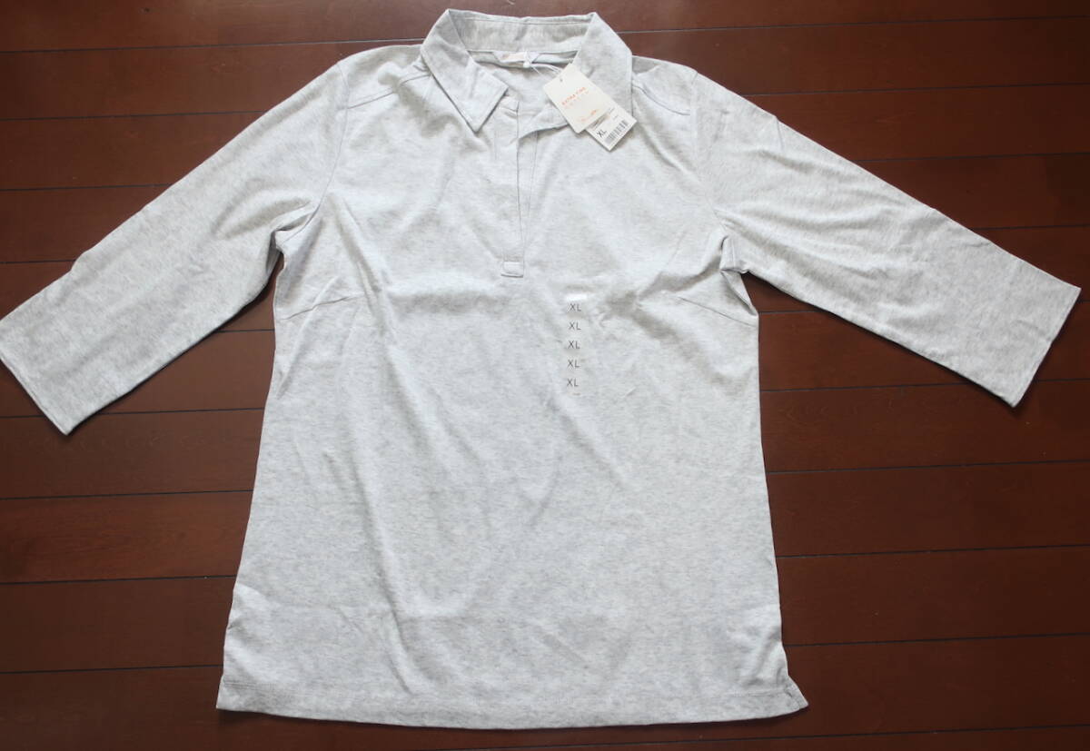 - UNIQLO/ユニクロ★スキッパーポロシャツ7分袖【XL】ライトグレー・未使用