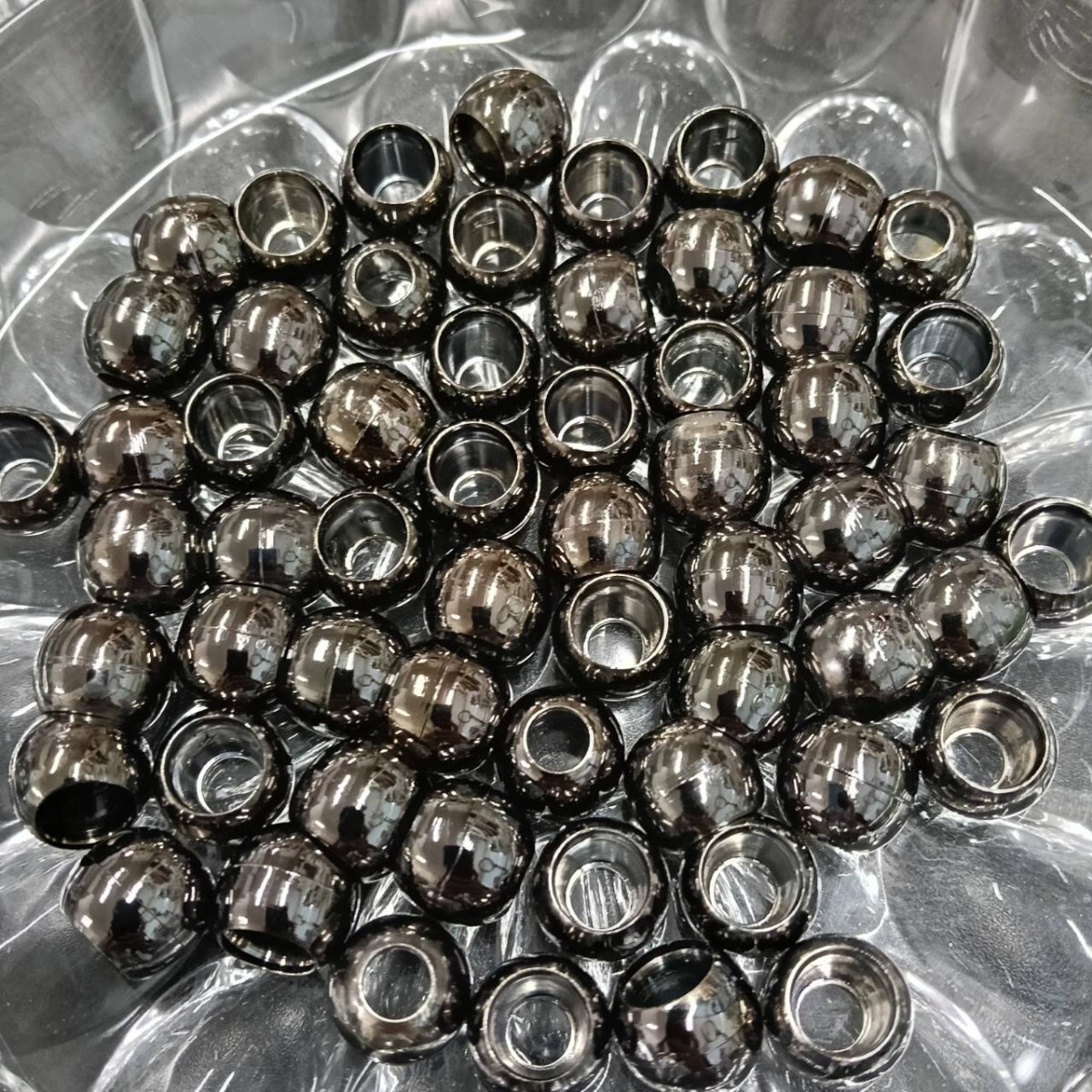 > ☆未使用 大量 プラビーズ ラウンド 約41g 12mm ブラック 黒 メタル ヴィンテージ パーツ アクセサリー ネックレス イヤリング B-244
