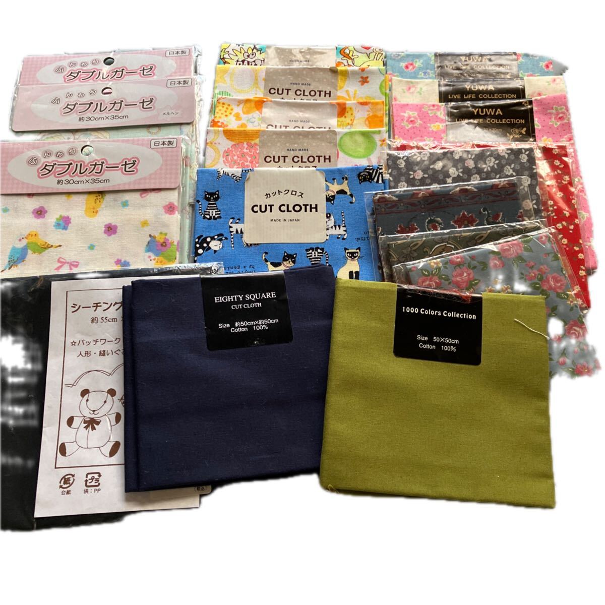 - !ハンドメイド材料・パッチワークカットクロス 綿100% まとめて( 花柄・ 動物柄・無地 他)19枚