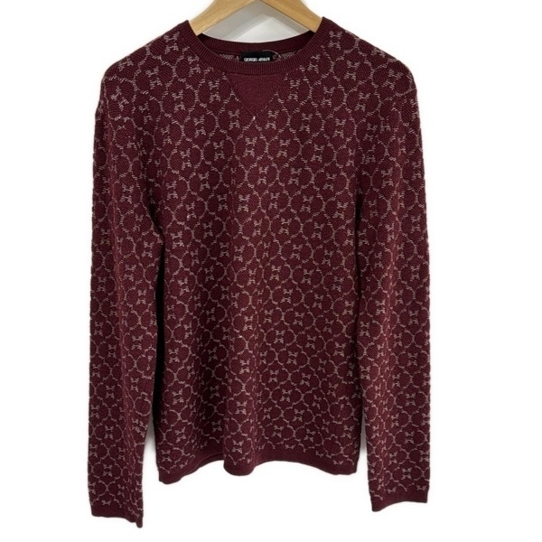 > ジョルジオアルマーニ GIORGIOARMANI 長袖セーター/ニット サイズ48 M - ボルドー×アイボリー メンズ ジャガード 美品 トップス