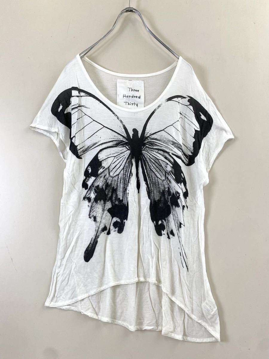 > ●Three Hundred Thirty Days アシンメトリー バタフライ Tシャツ 白 ◆蝶 カットソー スリーハンドレットサーティーデイズ ◆W9 TKら6J-16