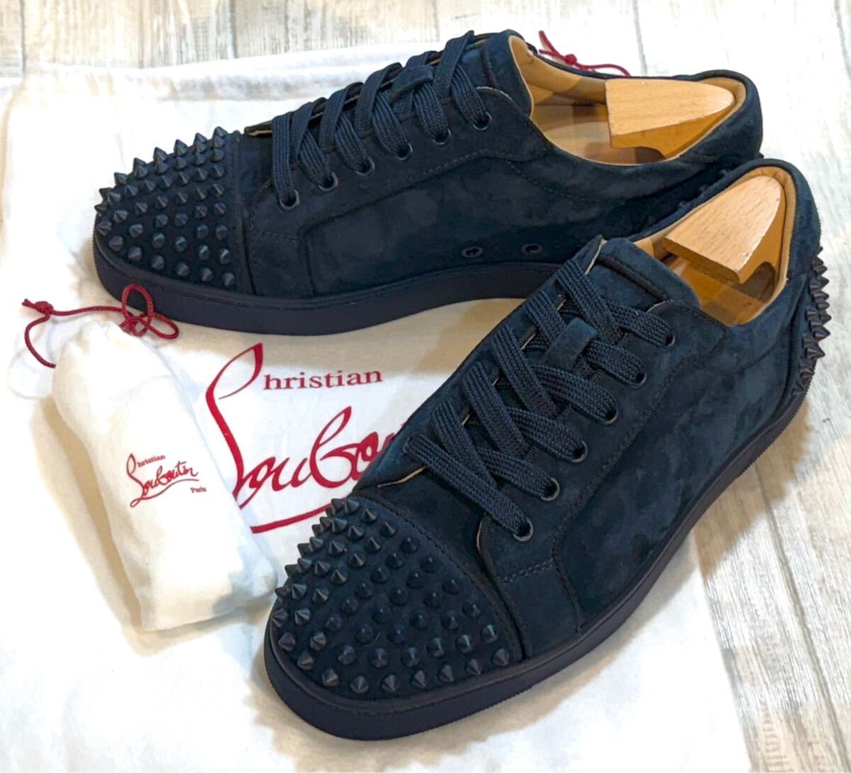 - Christian Louboutin クリスチャン ルブタン◆26cm 41◆レザースニーカー 革靴 ドレススニーカー スエードレザー 紐靴 ITALY製 メンズ 紺