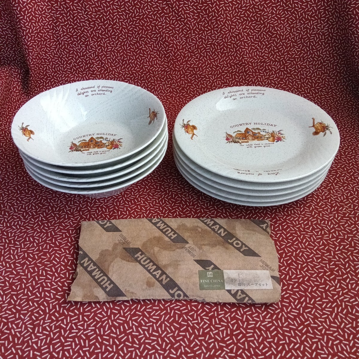 > 未使用☆COUNTRY HOLIDAY カントリー ホリデー プレート 皿 食器 昭和 レトロ まとめて セット スープ皿 SANYO ファンシー