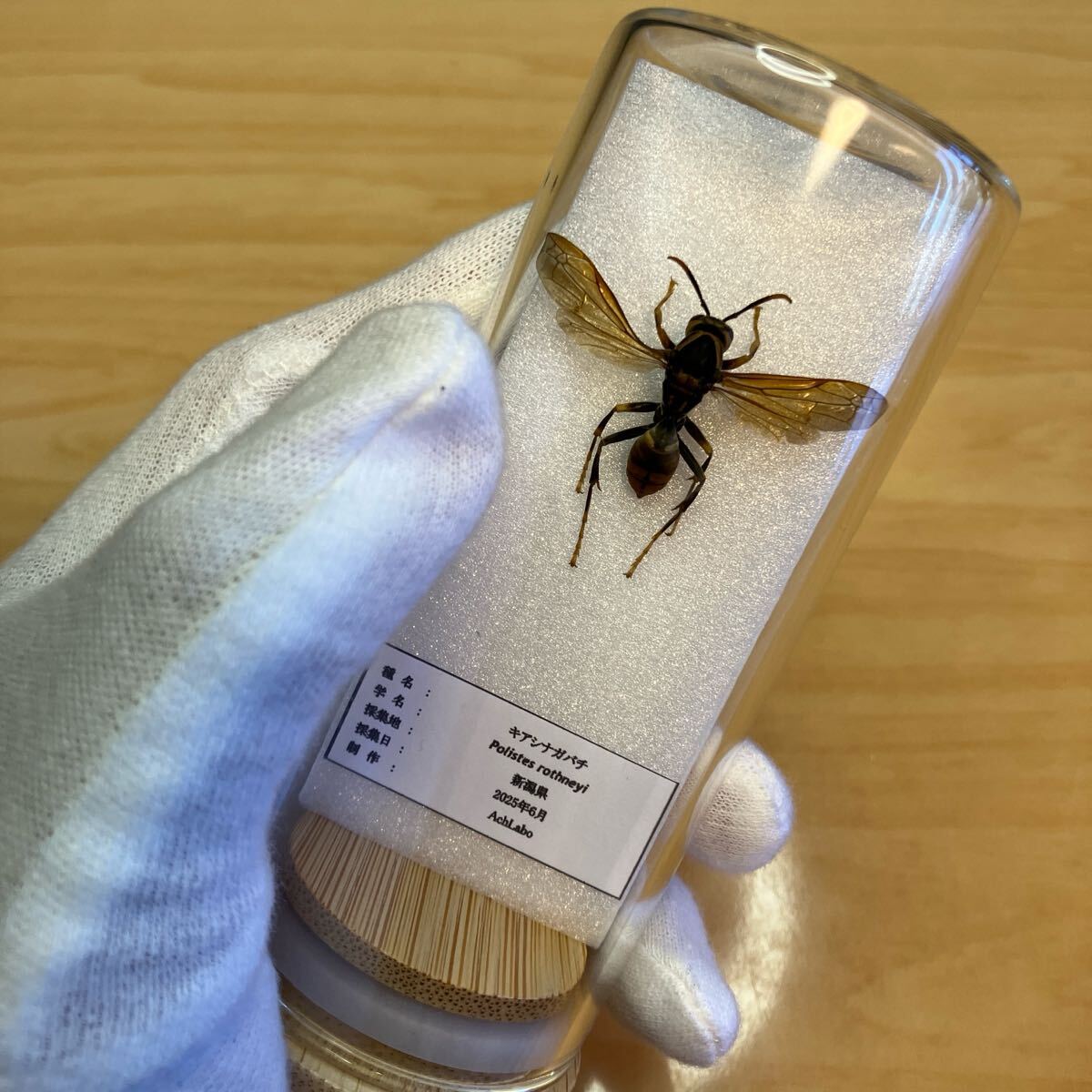 - 【昆虫標本】キアシナガバチ ガラスケース入り