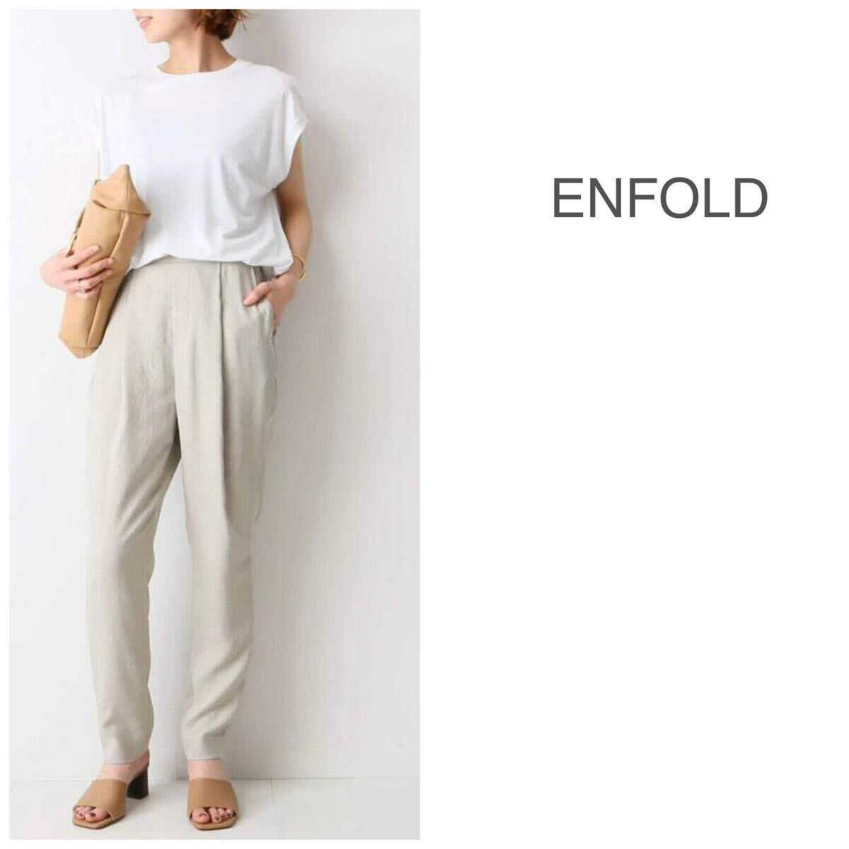 - 美品 ENFOLD 洗える リネンライク ゴムジョッパーズパンツ 36 日本製 レディース パンツ