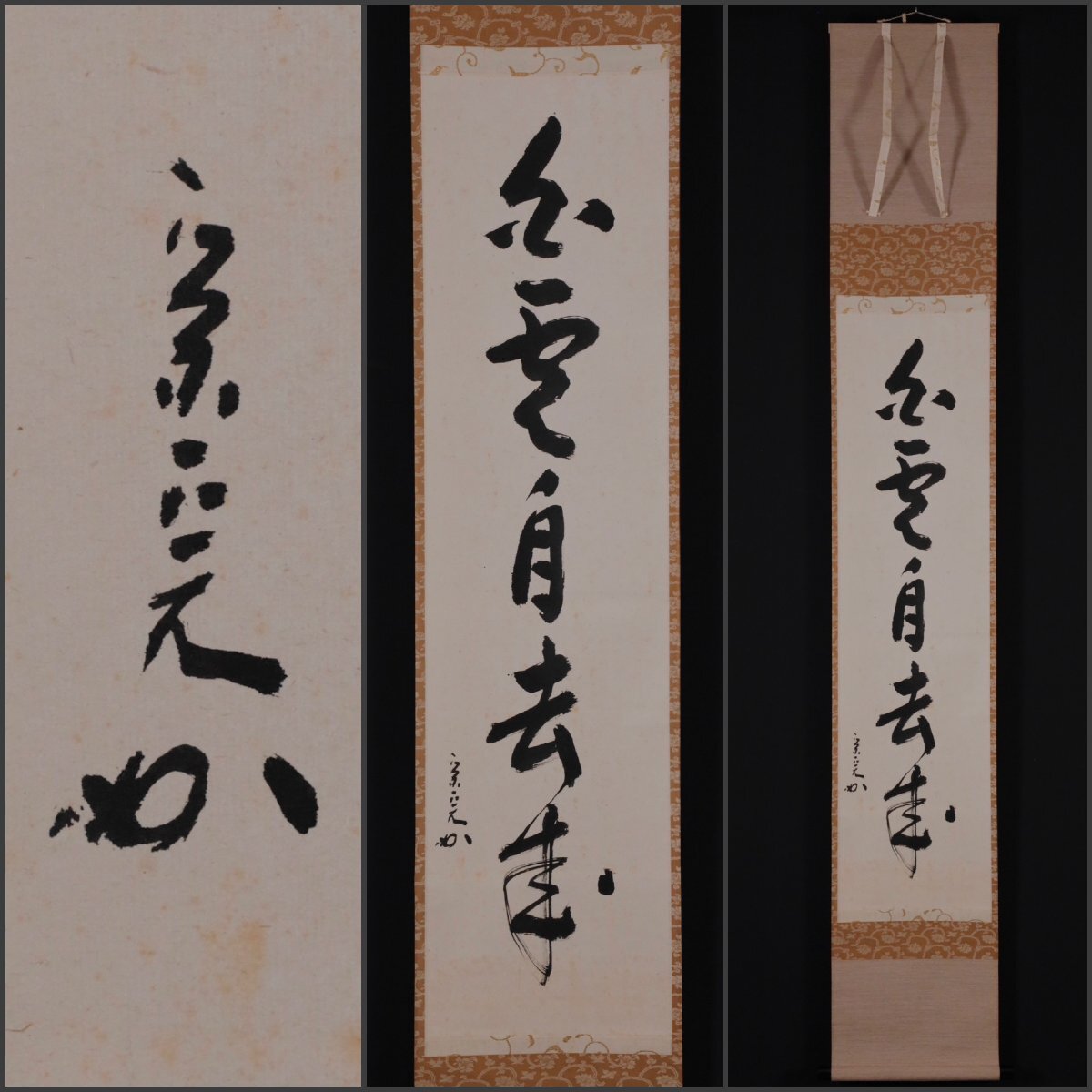 > 【模写】吉】12687 堀内宗完 書「白雲自去来」 表千家流 堀内家12代 長生庵 兼中斎 茶掛け 茶道具 禅語 掛軸 掛け軸 骨董品