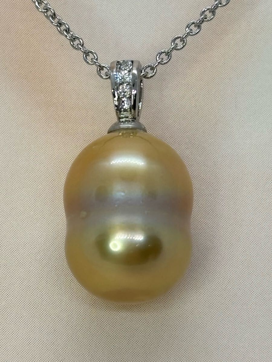 - 南洋白蝶真珠 バロックパール ゴールデンパールペンダント新品 (N856) ネックレス アクセサリー