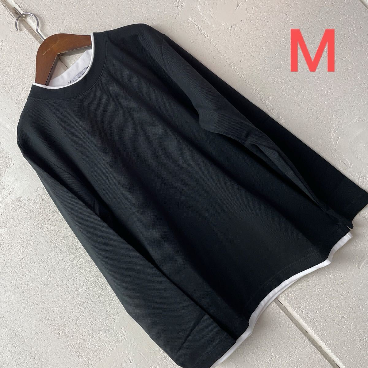 - Mサイズメンズレイヤード風長袖カットソー黒ブラック