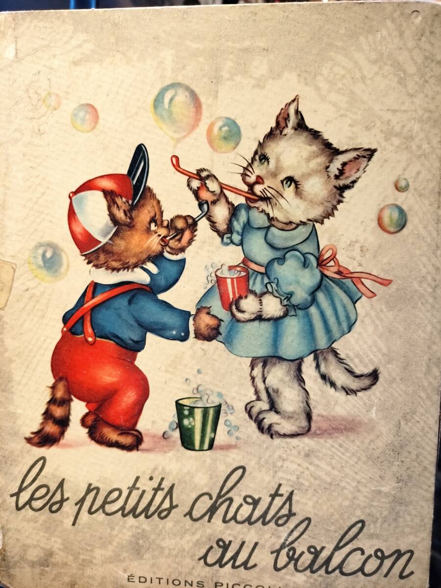 - フランス アンティーク とても可愛い絵本 猫達とシャボン玉 可愛いドレスの猫ちゃん 1951年!