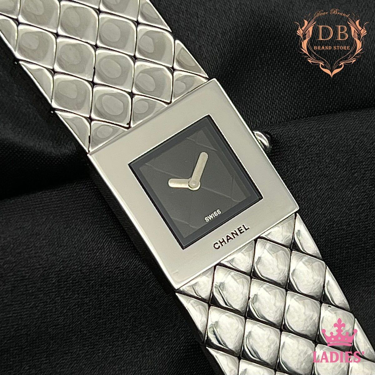 > 【余りゴマ有】 シャネル マトラッセ シルバー 新品電池 黒文字盤 エレガント CHANEL レディース 時計 銀 稼働 フォーマル 新品未使用級
