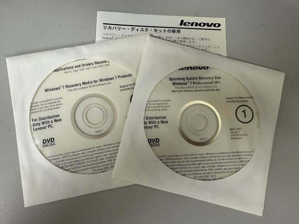 - 開封未使用品 Lenovo L412/L512 (0530/0553/0585/0591/2550/2597/2598/2599) リカバリーWindows 7 2枚組 元箱付
