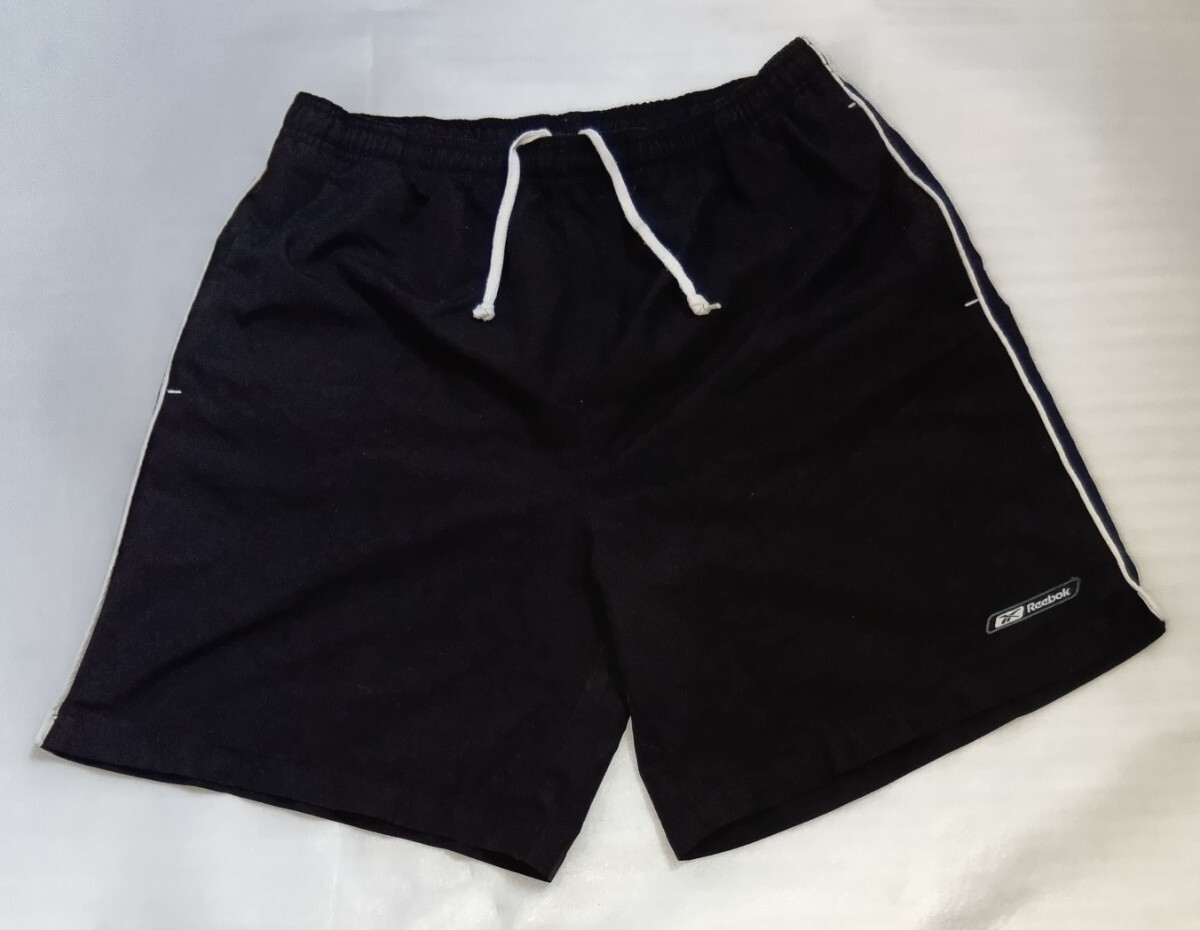 > ☆Reebok サイズL メッシュ インナー付ショート短パンツ半ハーフ ズボン ボトムス黒ブラック白ラベルLINEスポーツ ファッション リーボック
