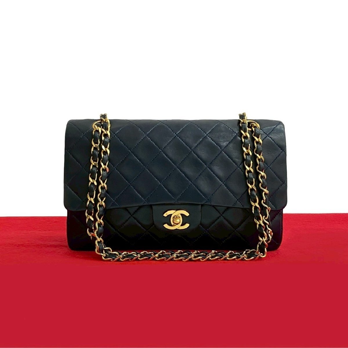 > 極 美品 シール有 0番台 CHANEL シャネル マトラッセ ココ Wフラップ ラムスキン レザー チェーン セミ ショルダーバッグ ネイビー 415-5
