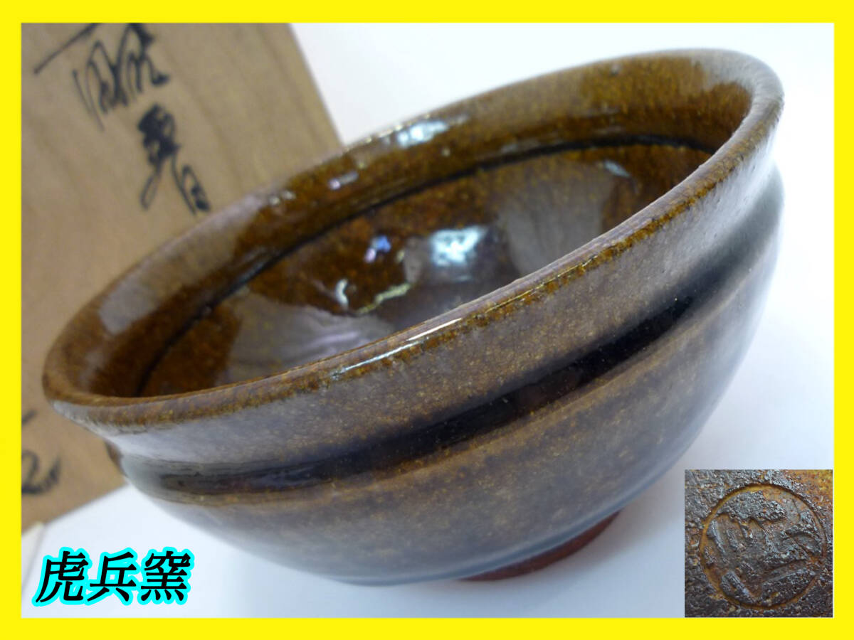 - 旧家蔵出 激レア 上野泌泉焼 たぎり焼 虎兵窯 抹茶碗 銘有 茶碗 藤本虎兵 優作 端正 秀逸 桐箱 小服 重厚 風情 茶道具 田川郡 趣 逸品 貴重