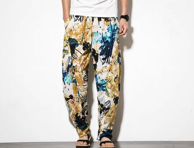 - 新作夏新品 サルエルパンツ 綿麻 ワイドパンツ リネンパンツ メンズ テーパードパンツ 花柄 チノパン ゆったり 大きいサイズ M~5XL選