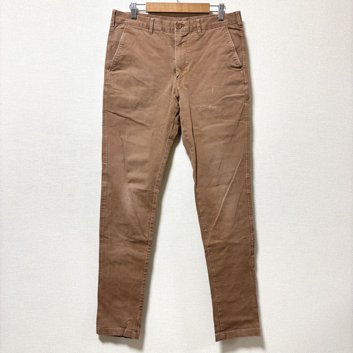 - 美シルエット!【UNIQLO】ユニクロ スキニー パンツ ストレッチ スリム テーパード チノパン ライトブラウン 茶 メンズ ウエスト79/Y34530SS