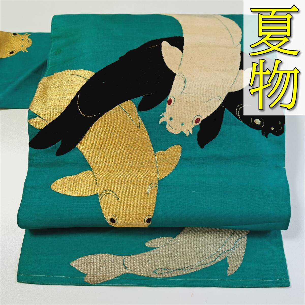 - 即決■着物の越田■幅32.5長さ353.5 正絹 アンティーク 名古屋帯 名古屋仕立て 夏物 ハギレ・リメイク向け お太鼓柄 鯉 双◇ま23J04a