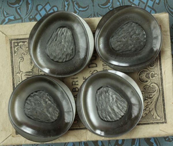 光沢のあるグレーの大きなプラスチックボタン4個です。