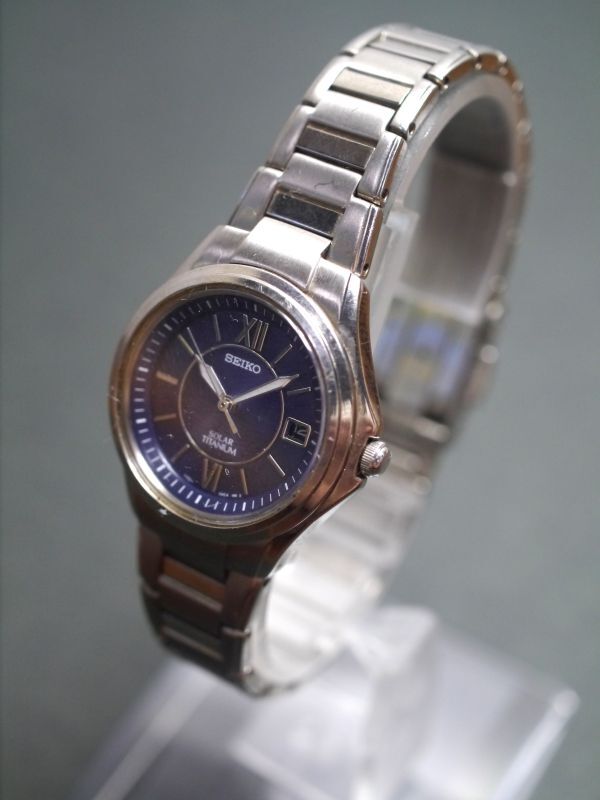 > セイコー SEIKO ソーラー SOLAR 3針 デイト チタン 純正ベルト V182-0AA0 女性用 レディース 腕時計 ab401