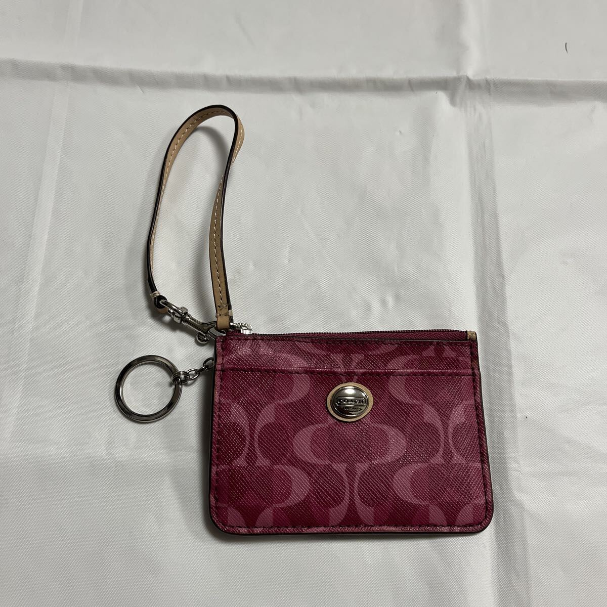 > 送料一律430円 美品 COACH コーチ シグネチャー カードケース 小銭入れ付き ロゴ金具 レザー ピンク