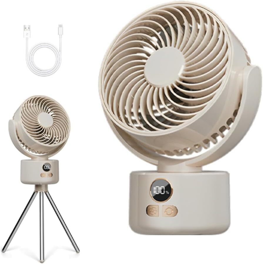 - 卓上扇風機 自動首振り キャンプ 扇風機 三脚スタンド付き 風量3段階調節 LED電池残量表示 風量段階表示