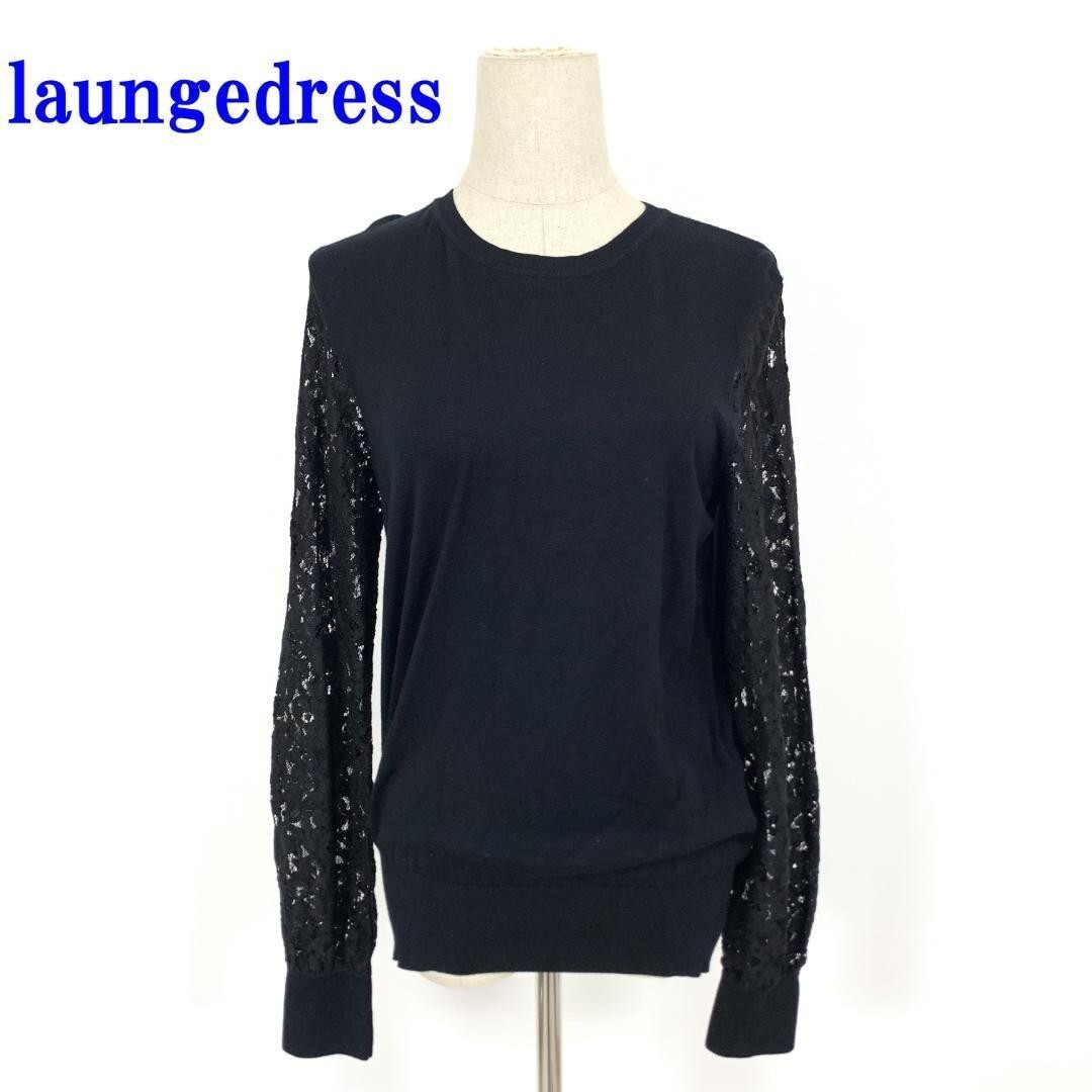 - ラウンジドレス 長袖ニット ブラック レーヨン laungedress 袖レースポリエステル F C3257