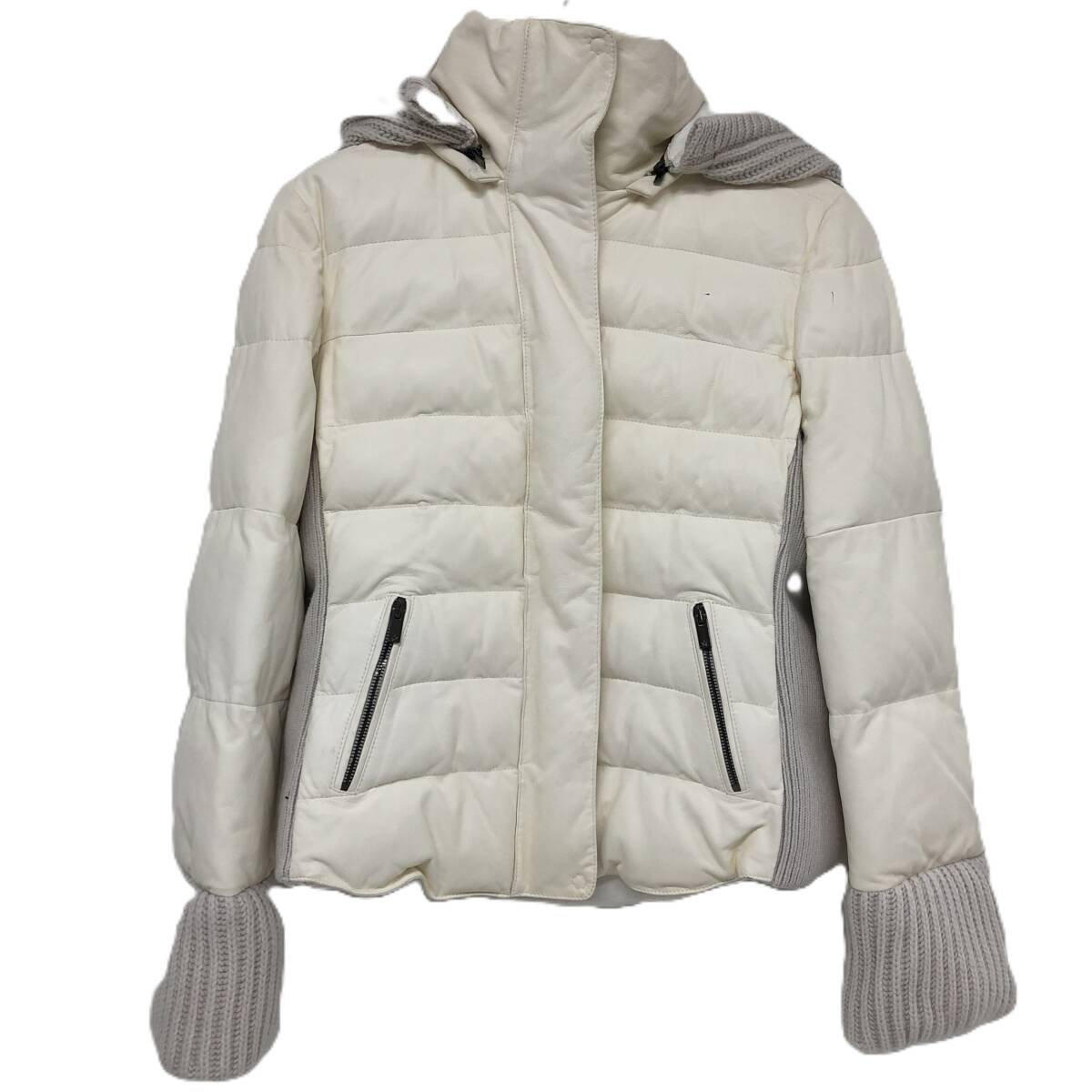 - #11312 LORENA ANTONIAZZI ロレーナアントニアッツィ レザーコート ダウンコート 牛革 カシミヤ ウール 白 ホワイト 異素材切り替え