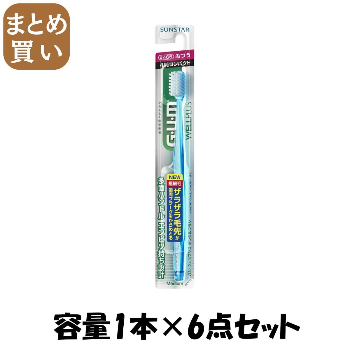 - 【まとめ買い】GUM ガム ウェルプラス デンタルブラシ #466 ふつう 1本 容量1本×6点セット サンスター 歯ブラシ