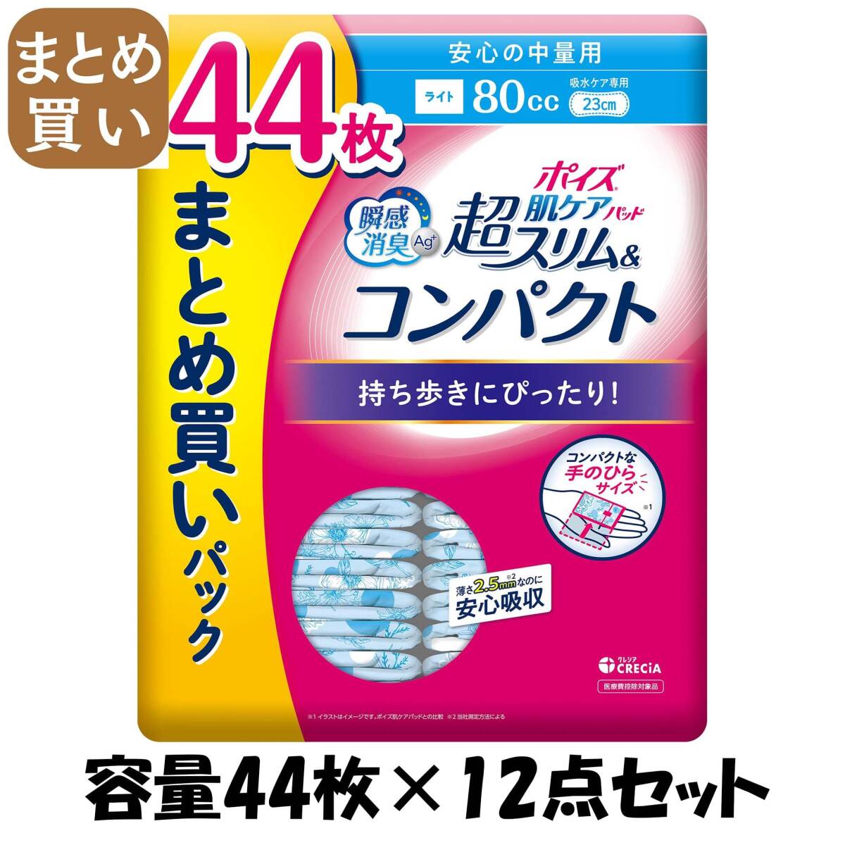 - 【まとめ買い】ポイズ 肌ケアパッド 超スリム&コンパクト 安心の中量用 44枚 まとめ買いパック容量44マイ×12点セット生理用品