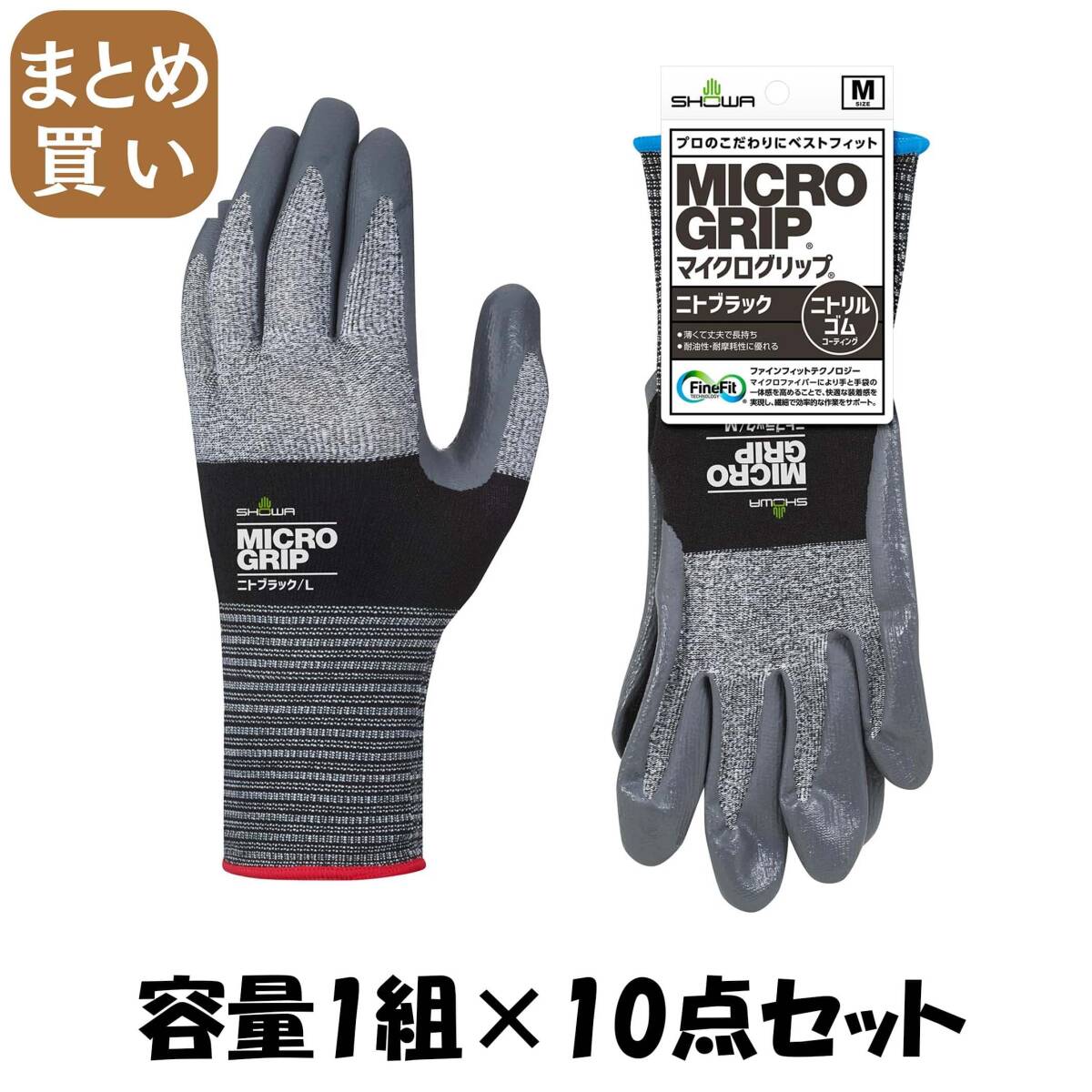 - 【まとめ買い】#374 マイクログリップ ニトブラック M 容量1クミ×10点セット ショーワ 手袋