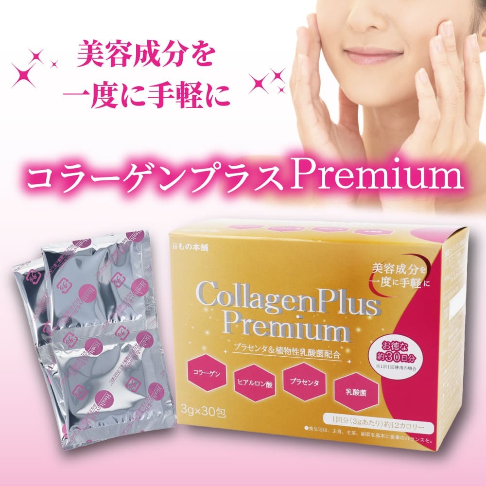 ▼▼▼▼▼▼注意事項▼▼▼▼▼▼・送料込み(送料700円が商品価格に含まれています) 一部地域では追加送料あり。・お取り寄せ商品です。弊社にて手配後、メーカー・卸業者からの直送になります。・まれにメーカー欠品、出荷遅延等が発生致します。問題発生時は別途メールにてご連絡致します。・配送方法の指定、日時指定、置き配、ギフト対応、他商品との同梱配送などは対応できません。・まとめ買いや複数購入の場合は通常より発送に時間が掛かる場合がございます・複数個口の場合、2階以上への搬入ができない場合があります。(その場合は1階での受け渡しとなります)・大型連休、お盆、年末年始などは発送をお休みさせていただく場合がございます・メーカー都合により、パッケージは予告なく変更される場合がございます・梱包用のダンボールはリサイクル品を使用させていただきます。・注文に関するご連絡(注文確定通知・発送通知など)はメールでご案内させていただきます※商品ページの内容について、少しでもご不明な点などがございましたら購入前に一度ご連絡ください▲▲▲▲▲▲注意事項▲▲▲▲▲▲〇商品説明プラセンタ&植物性乳酸菌配合!●コラーゲン・ヒアルロン酸・プラセンタ・乳酸菌配合。●サラッと溶けて、おいしく飲める!●コーヒーや紅茶、料理等に入れても美味しい!●ご自宅で簡単に作れて続けられる!・目覚めのコーヒーに!・ヨーグルトに混ぜても!・夕食時のスープにも!●お徳な約30日分!(※1日1回使用の場合)【名称】コラーゲン含有食品【原材料】デキストリン(国内製造)、豚コラーゲンペプチド、馬プラセンタ、植物性乳酸菌/ヒアルロン酸(一部に豚肉・ゼラチンを含みます)【栄養成分1包((3g)あたり)】エネルギー11.19kcalたんぱく質1.31g脂質0.01g炭水化物1.48g食塩相当量0.005mg【本品に含まれるアレルギー物質(28品目中)】豚肉・ゼラチン【お召し上がり方】本品は食品ですので、お召し上がりの量などに特別な定めはありませんが、1日当たり1〜2包程度を目安に、水または牛乳などに混ぜてお召し上がりください。★食生活は、主食、主菜、副菜を基本に食事のバランスを。【保存方法】高温・多湿、直射日光を避け、涼しいところに保管してください。【注意】・天然品の原材料を使用しているため、味や色、香りが多少変わる場合もありますが、品質には問題ありません。・品質保持の意味から、開封後はお早めにお召し上がりください。・乳幼児の手の届かない所に保管してください。・ごくまれに体質に合わない方もおられますので、その場合はご利用をお控えください。・湿気等により固まる場合がありますが、品質には問題ありませんので、安心してお召し上がりください。〇商品仕様個装サイズ:140X100X75mm個装重量:約135g内容量:90g(3g×30包)製造国:日本【発売元:株式会社iiもの本舗】(出典:iiもの本舗)