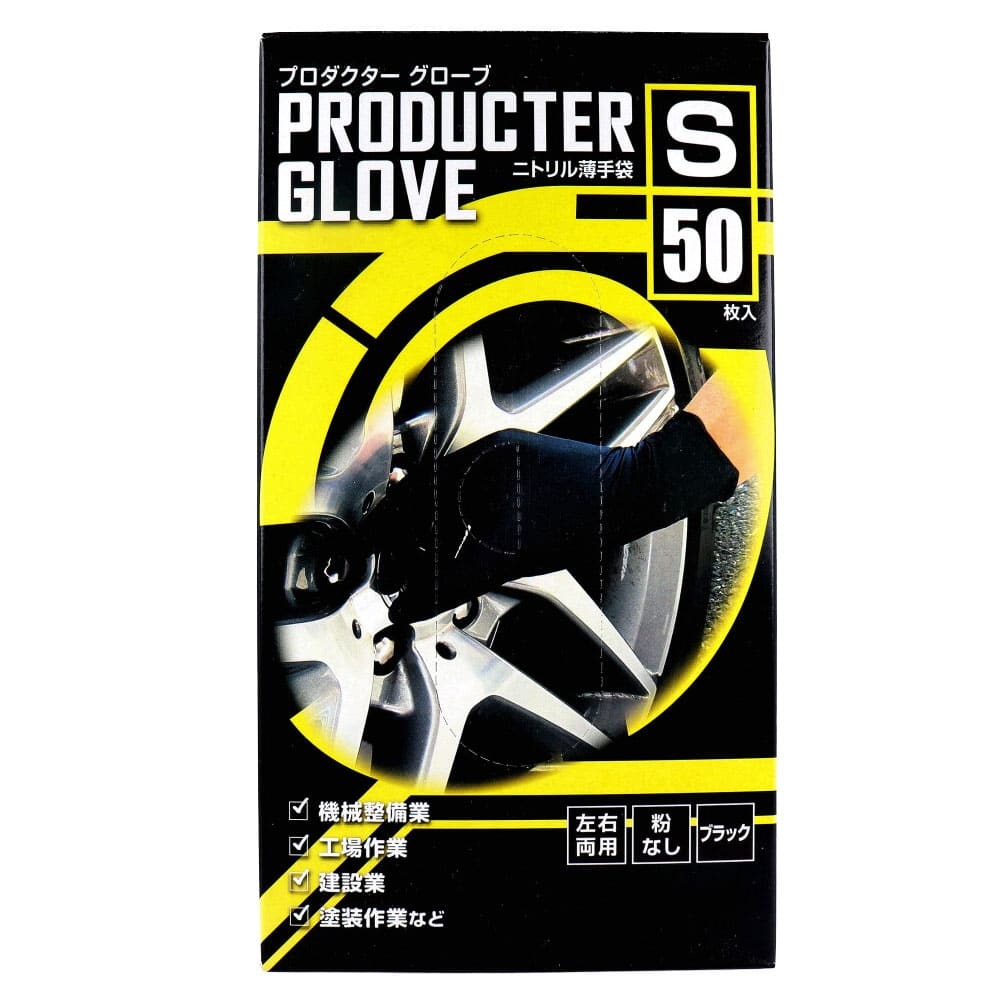 - プロダクター グローブ ニトリル薄手袋 粉なし 左右両用 ブラック S 50枚入